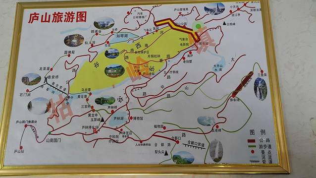 附上 庐山的总平面图,景点还是挺分散的,可我的目的地,基本就是东线,含鄱口——五老峰——三叠泉。