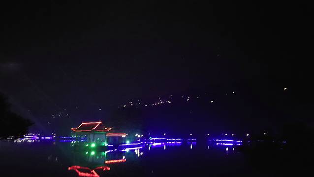 华灯初上,近处是如琴湖上曲折婉转的桥、亭子在霓虹灯的衬托下,别样美;远处是山上的房屋;手机并不能展现它的美,每到这种时候,偶尔有念头闪过,该不该买一台单反呢?既然喜欢旅行,也要学着记录才是。