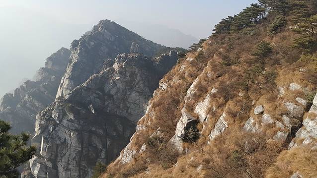 五老峰这边的山,裸露在外的岩石多、植被少,是片岩?一上完课,全都还给老师了,只是知道有这种词而已