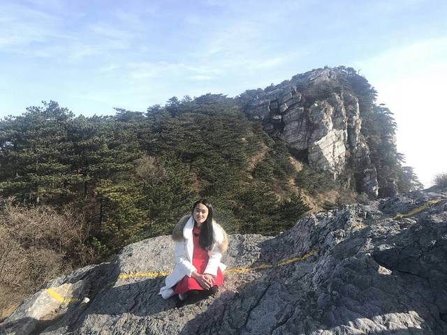这里是三峰吧,在这里遇到了姐两人,帮我拍了张照片。后来,一路同行,一路上聊聊天,倒不觉得很累