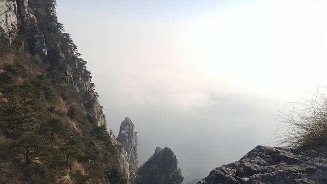 照片应该是从四峰顶上向下拍的,遗憾像素不太好,加之能见度不高,不能一览,朦胧美吧,只能这样说了。