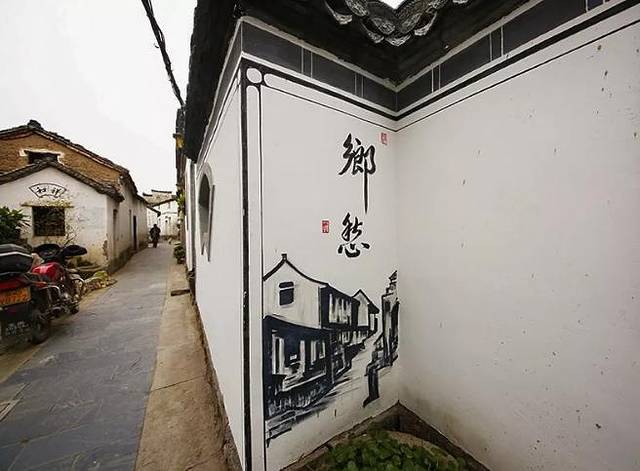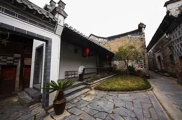 在青灰色的烟雨下,走进芝英镇游溪塘村,只见石砖垒筑而成的老房周围,花团锦簇的花圃如繁星点缀其间,街角小品错落有致,一步一景。