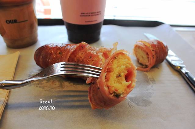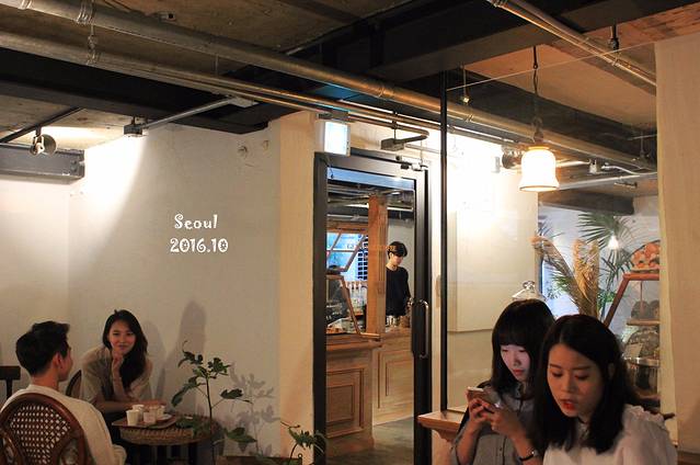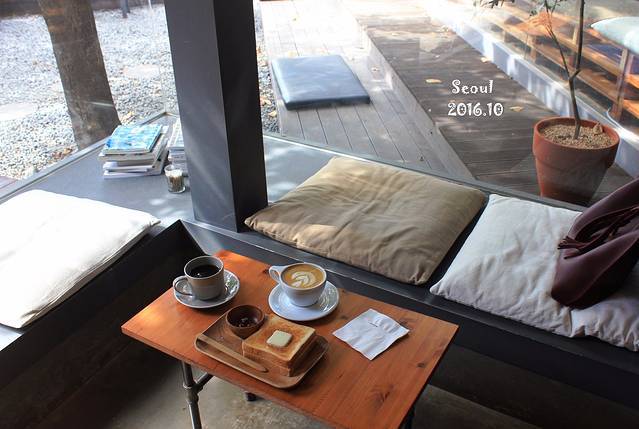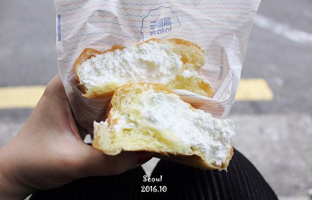 这里的面包是用百分之百的动物性奶油,经过特别的配方制作而成的。所以cream绵密却一点不腻,门口的坐垫也很贴心~ <2500韩元>