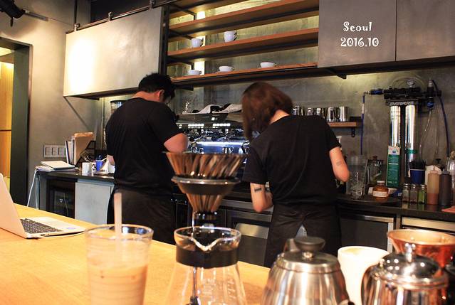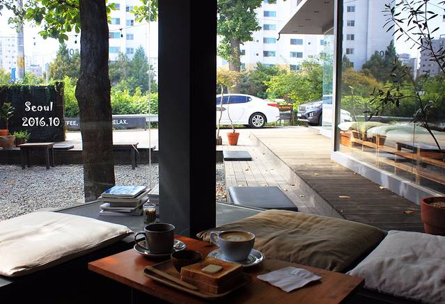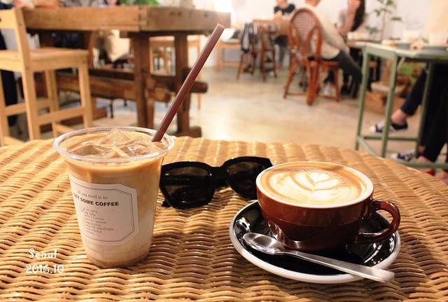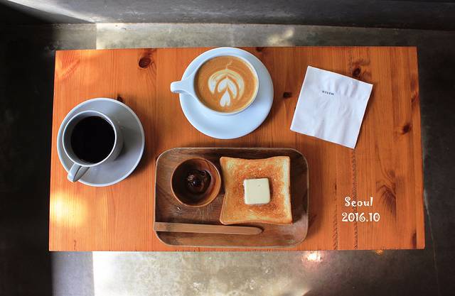 咖啡上了之后,俩人终于不再东张西望了。<7300韩元>