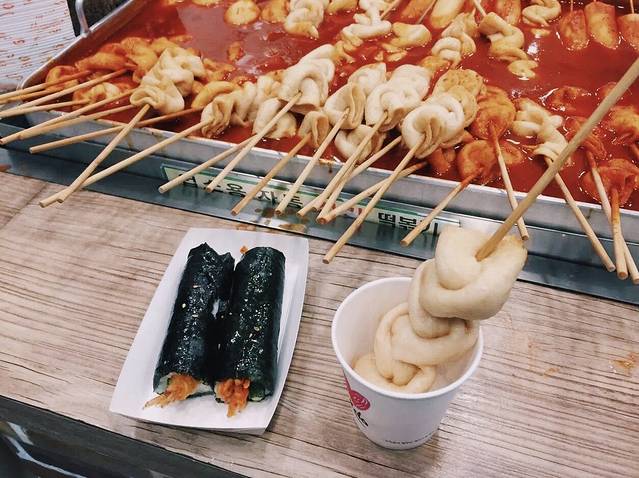 早上起来,就想吃点接地气儿的早餐。正好看见地铁站里有一家叫Farmer’s T的紫菜包饭店,二话不说拉着雪姨进去了。这家紫菜包饭的种类超级多,而且内陷非常用心,不是路边摊的万年基本款,鱼饼超级厚实,特别赞!自己选好去结账就行,很便利,适合上班前时间不太充裕却又想好好品尝一顿美味早餐的通勤人员。我选了个大虾的超级好吃,我一个不爱吃酱料的人都觉得里面的酱很棒,让我想起了日本便利店的大虾饭团~雪姨要的五花肉比较传统,后来还加了个辣牛肉的也好吃~没记错的话单价好像都是1000韩元,价格亲民,还可以盛一杯鱼饼清汤~整个人一下都醒了~
