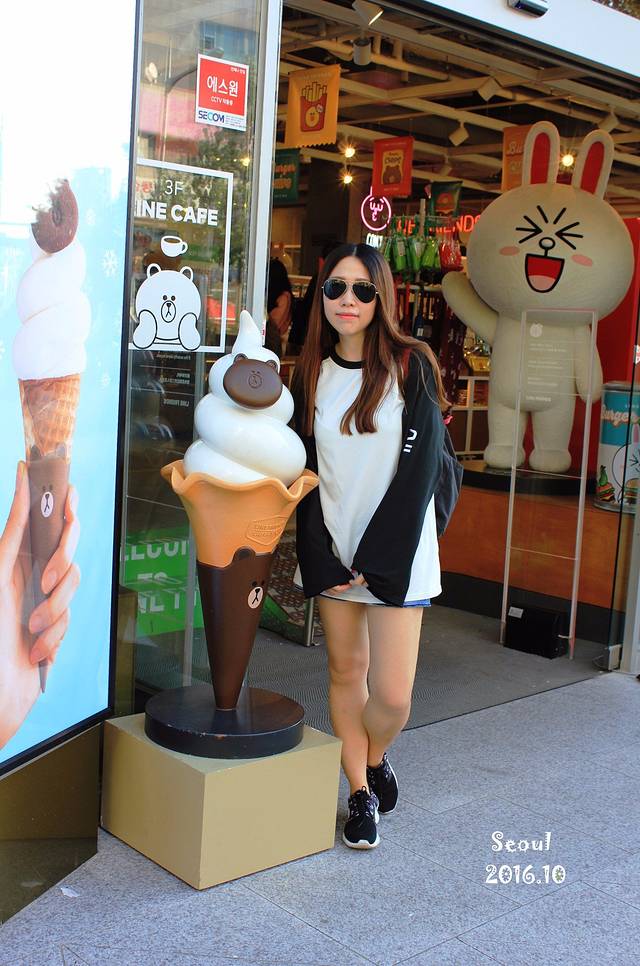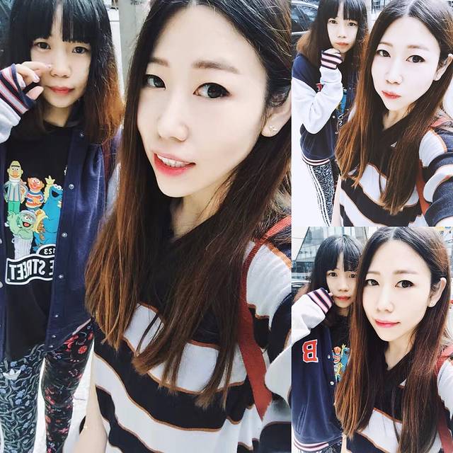 担心我冷不冷的各位,十月初的首尔还挺热的个人认为,不知道是不是我火大,反正这样穿还热呢,雪姨则全程大外套哈哈,仿佛两个季节~