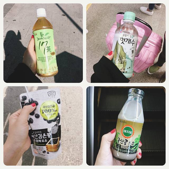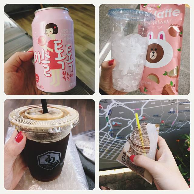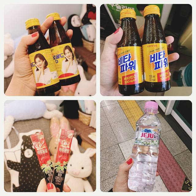 简单评价下吧~(图一)两个功能饮料都不错~那个红参一直想尝试来着,最近因为后裔宋仲基也火了一把,但是真的好难喝!!要不是因为贵我才不会强忍着喝完它...说是对身体好但一个没啥感觉,怎么也得喝它个一箱才能有效果吧...济州岛的矿泉水也没啥感觉~(图二)全是颜值爆款,都不难喝~(图三)两款茶都很爽口,和日本的茶饮料一样是不含糖的我很喜欢~下面两款黑豆饮品,袋装的是住的地方房东准备的,可以随便喝,早上来一袋很舒服~瓶装那个有点甜额...(图四)那个酒好多人都喝就尝了尝,感觉跟果汁差不多,LINE那个饮料挺不错~记得结账时候单买冰块,热的时候来一杯特别爽量也足够大!这个巧克力奶也是韩国非常火的饮料,是在京畿道一家小便利店买的,店里只有个老奶奶,想起之前Tablo和Haru唱的那首吸管歌,本来想要不要试说下发音不准的韩语,后来一着急还是说了日语,不过老奶奶竟然听懂了哈哈!每次来都会被韩国人的日语水平惊喜到~后来在机场的caffee bene用日文点了杯冰美式,结果之后被全程用日语服务了哈哈哈~