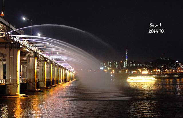 当初做攻略的时候,自己写的“3号线高速巴士客运(Express Bus Terminal)站8-1号出口,出来左转走到桥底下右转地下通道,然后一直走看见一个石碑上刻着盘浦大桥,跟着人流走”,但在没有导航的情况下看到这些字还是会一脸懵逼的最后俩人靠推理和闻味儿到了汉江边儿,也是坚强!