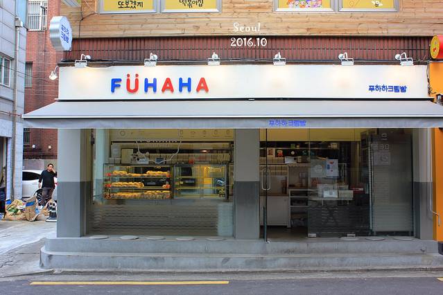 这家是SBS《生活达人》节目中曾经报道过的一家面包店。品尝它的味道会让人不自觉的微笑,所以用“噗哈哈”的谐音作为了该店的店名。也太草率了~