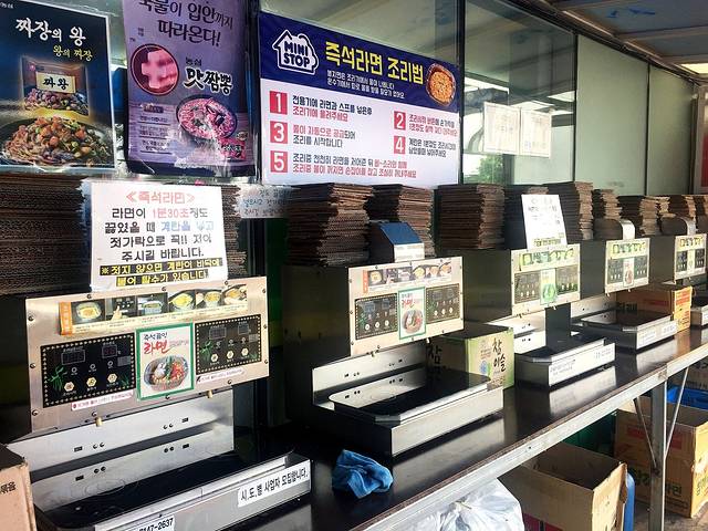 这汉江边儿上的泡面系统简直太发达了!据说这个拥有煮面机器的便利店叫ministop,好腻害!不会韩语如我,看图示完全没问题,如果买了笨鸡蛋,中间还有加蛋的环节,老高级了!(因为那天晚上一片狼藉,只好网上盗图来张干净的~)