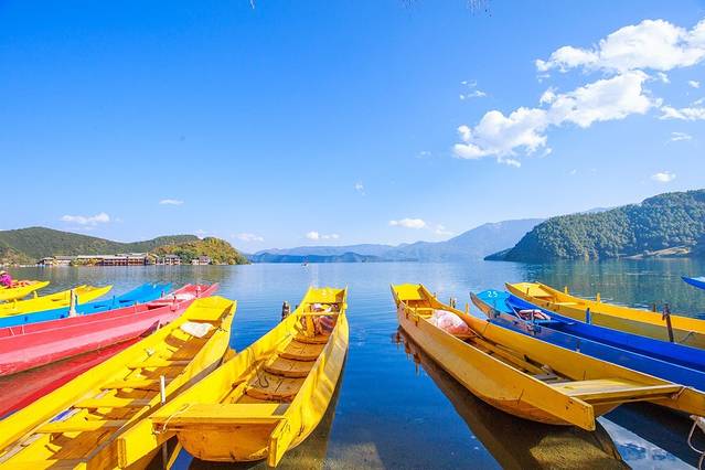 猪槽船颜色丰富,是泸沽湖独特的颜色。