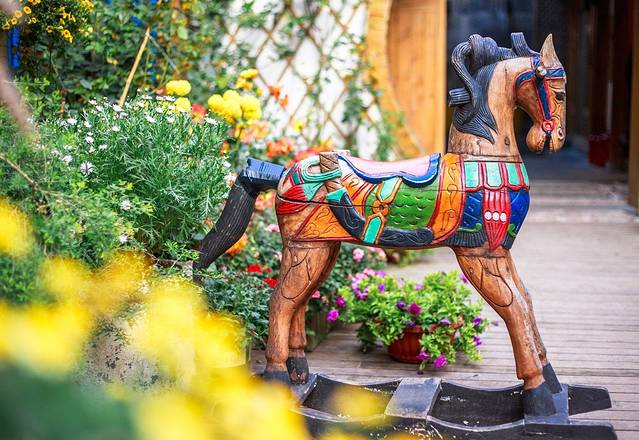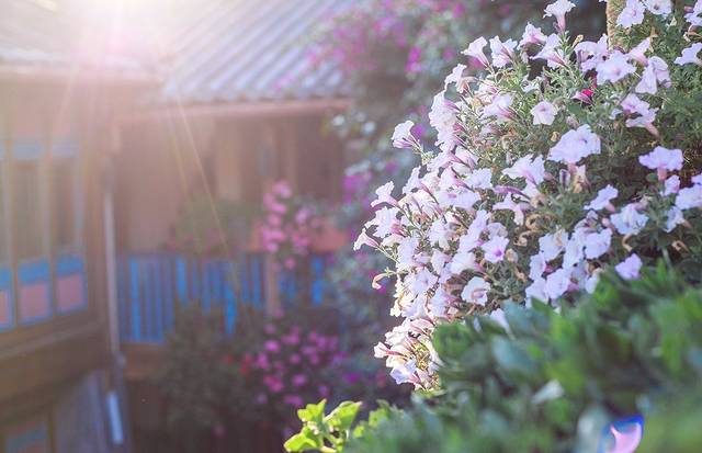 这次依然选择上次来住的院子古城里的听花堂客栈。许久不见,院子里依旧鲜花盛开。