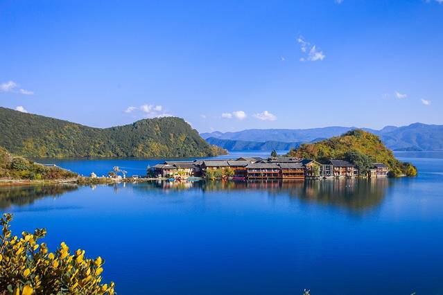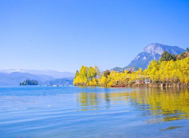 谁说泸沽湖就是海天一色,你看这秋景色彩多丰富。