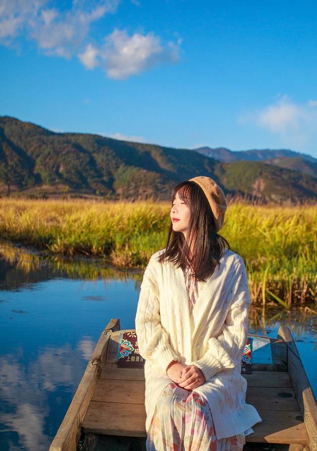 到达草海边上时差不多快要日落了,水草被太阳照的金灿灿的,秋天的泸沽湖原来这么美。