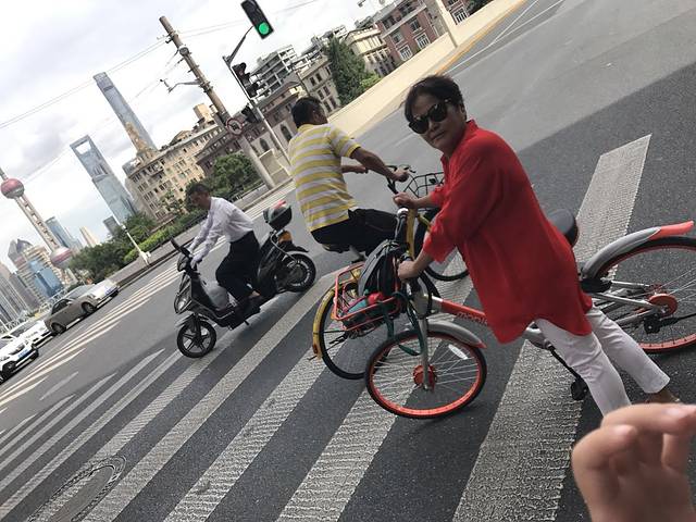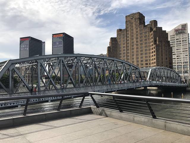 我这次选住的地方离哪里都感觉还好,都不是很远,这是很明智的一个决定,话不多说,骑上摩拜出发~~,大概20分钟左右的路程,就到了外白渡桥~,上桥就不可以骑单车了哦~