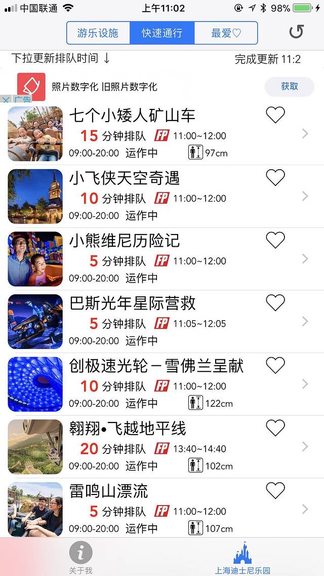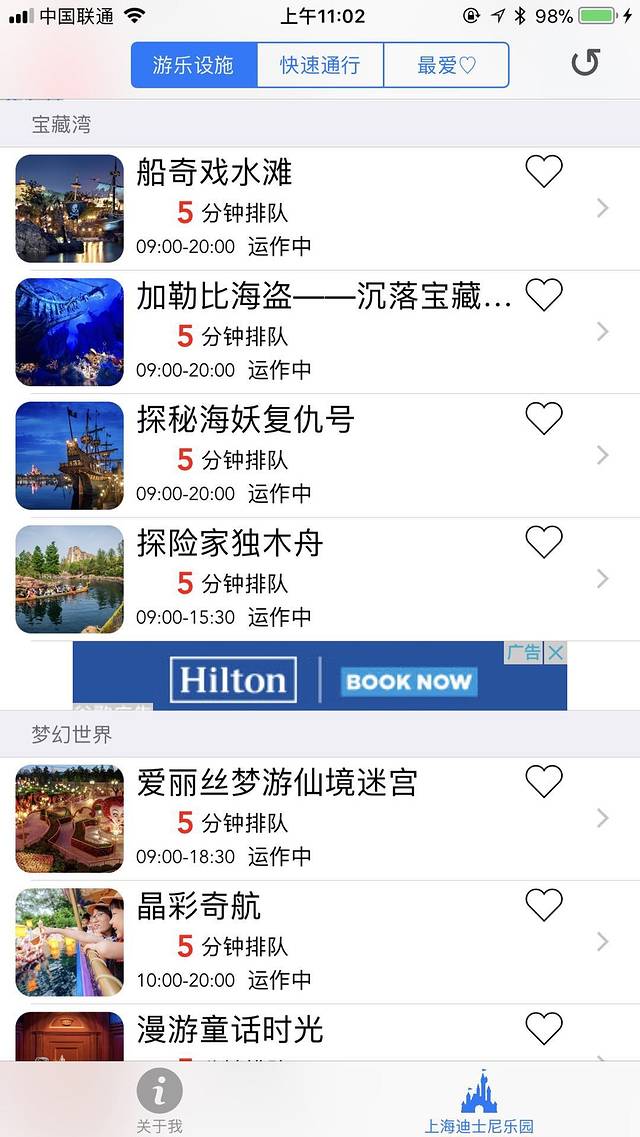 迪斯尼app可以看的每个项目的排队时间