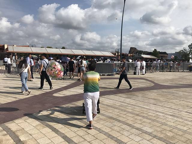 今天玩的人还可以,听说比前几天少多了,哈哈~~内心小庆幸~~园区有推车可以租,安检进去后就可以租,押金300租金60还是多少,我没太注意,因为我自己推车,所以没太多了解~车是有限的,要是准备租车的小伙伴,要早一点去哦。气球可以带进园区的。自拍杆、水、开封的食品不可以带进去,园区有冷热水提供,记得带个杯子就好,玻璃杯和玻璃制品包装的东西就不要带了,安检处会给你扣下的~~给孩子带些零食和酸奶之类的东西吧~~因为一天的时间真的很累,休息的时候可以吃的喝点~~