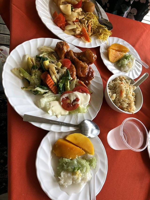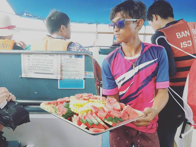 第一天我们上午浮潜一次,然后去岛上吃午饭,吃午饭没有餐桌,大家基本站着吃,蹲着吃,席地而坐吃,非常热闹,但是好在菜品相对来说很好的。