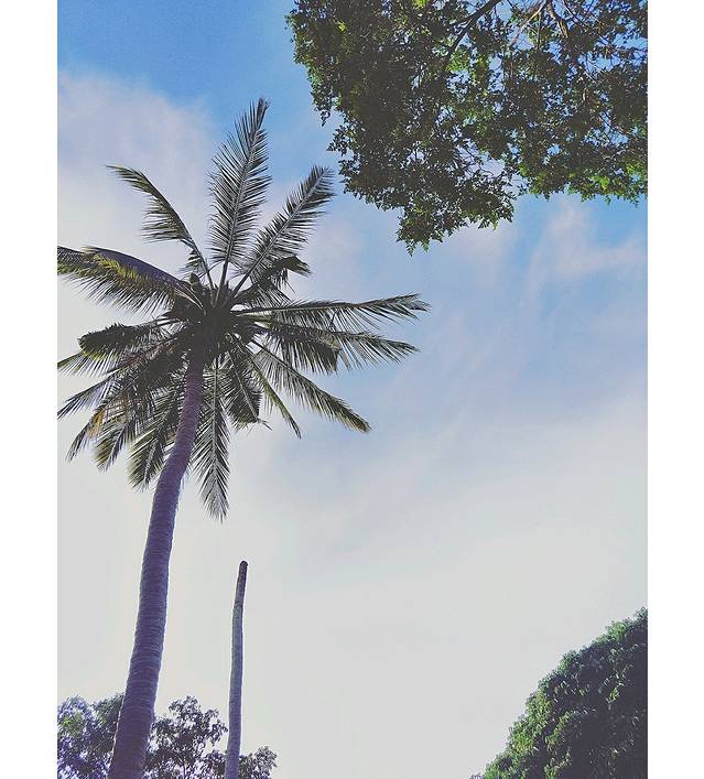 酒店里面的椰子树,还有鸡蛋花树等等