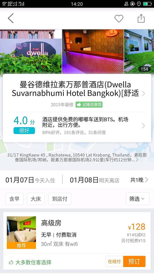 因为第二天一早8:40的飞机,怕曼谷交通不好,所以定了机场附近的酒店。这家酒店作为过渡酒店还是很好的,性价比很高。