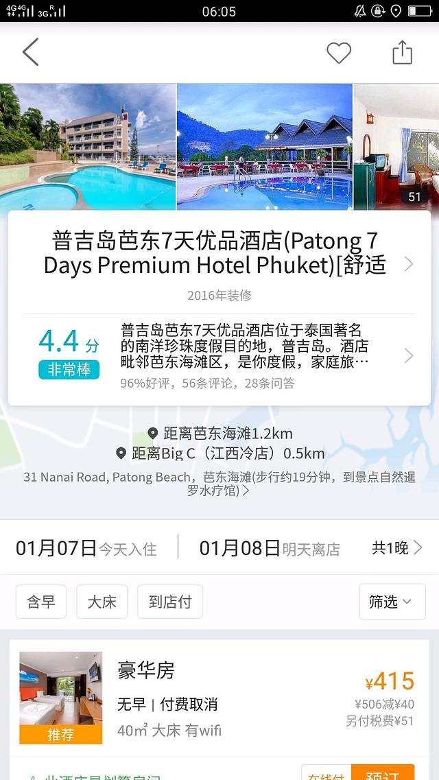 强烈推荐七天优品,服务态度一级棒,价格便宜,虽然离海滩有一点点远,但是相对没有很潮湿和吵闹。不差钱可以选芭东的智选假日,位置环境都很棒,相对大五星来说,肯定是更值得选择。
