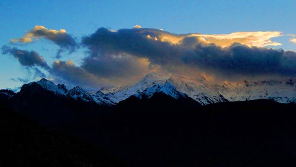 很少的睡眠,起来看日出。主峰上的云始终不曾散去,只看着天慢慢亮起来,梅里渐渐泛红,泛金,出现日照金山的景致。不知道没有看到主峰,没有看到完整的日照金山,算不算一种遗憾,不过传说一般常人是看不到的,我也就是个常人。任何事都不能完美,我已经觉得满足。