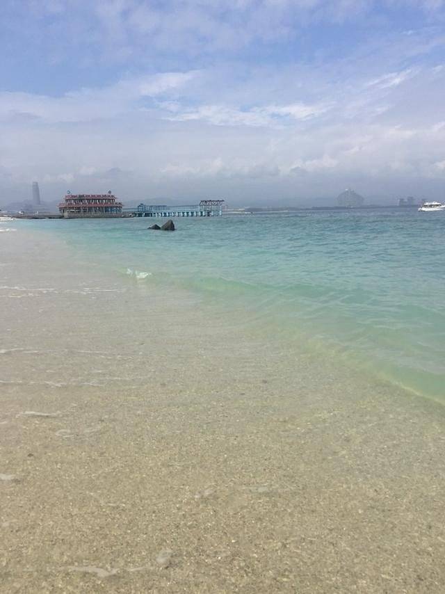 在虔诚的拜完观音后,我们继续坐电动车去往下一站。南山寺内很大,天气炎热的原因,我们在剩下的景点只短暂的停留下就走了。这么热的天气,我们当然要去玩水啦,沙滩沙滩,比基尼比基尼。三亚有很多玩水的海滩,最有名的就是三亚湾,亚龙湾,大东海,在我心中他们的水质排行:亚龙湾、三亚湾、大东海。但因为三亚湾与南山寺在同一方向上,所以我们逛完南山寺后直奔三亚湾