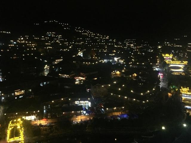 如银的饮烟,亘古沉默的山溪,郁郁独行的老牛,万家灯火,西江千户苗寨。从来只是从别人口中知道它的样子,想象着它万家灯火,想象着苗族姑娘的裙摆,这一次我终于走进了它。早上10点出发,下午4点到达西江千户苗寨门口,因为景区内禁止车辆通行,所以我们只带很少的行李坐景区大巴进到景区里面。今晚的酒店就在景区里面,离下车的地方10分钟的路程,因为走的是崎岖小路,所以感觉走的有点久。走到观景台时刚好夜幕降临,万家灯火在我眼前点亮。