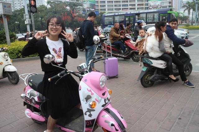 骑着电瓶车在环海公路上,北海这个地方因为离越南界不远,两个地方在有些方面有点相似,比如当地人的交通工具里以电瓶车居多