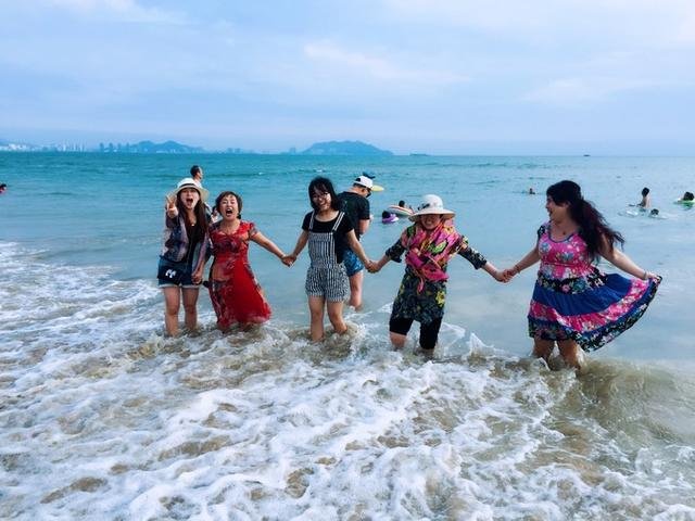 从呀诺达回来, 我们去了顺路的亚龙湾,在三亚的每一天都离不开海,所以我才那么嗨哈哈哈。亚龙湾的水比三亚湾更清澈,游玩的人也更多。它的浪很大,回旋力大,水性不好的人建议不要在此游泳。