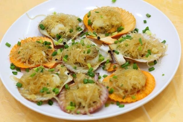 粉丝蒸扇贝,肉很有嚼劲,粉丝配上蒜蓉,好吃的不要不要的。
