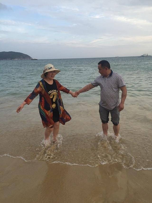 走哪都不忘秀恩爱,要手牵手玩水的老两口