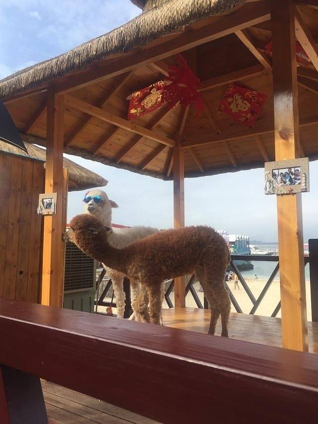 开车到蜈支洲岛售票口,需购买船票后才能乘坐小游艇到蜈支洲岛。一上岛,就遇见两头可爱的羊驼。在港口的旁边就有一大片海滩,可能是这片海滩离上岛的地方近的缘故,这里聚集了很多游客。我们同行的人都迫不及待的就在此换上泳衣,踏浪啦。