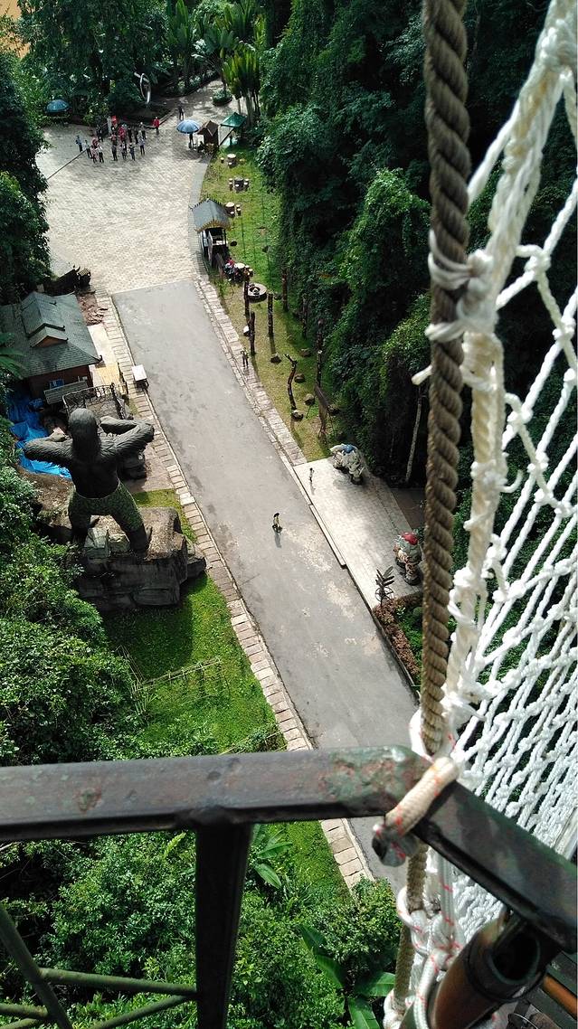~高空走廊~下面看的人在嘲笑上面的人胆怯的步伐!“哈哈、不要嘲笑人家,等下你也是这样,跟个大猩猩似的!”