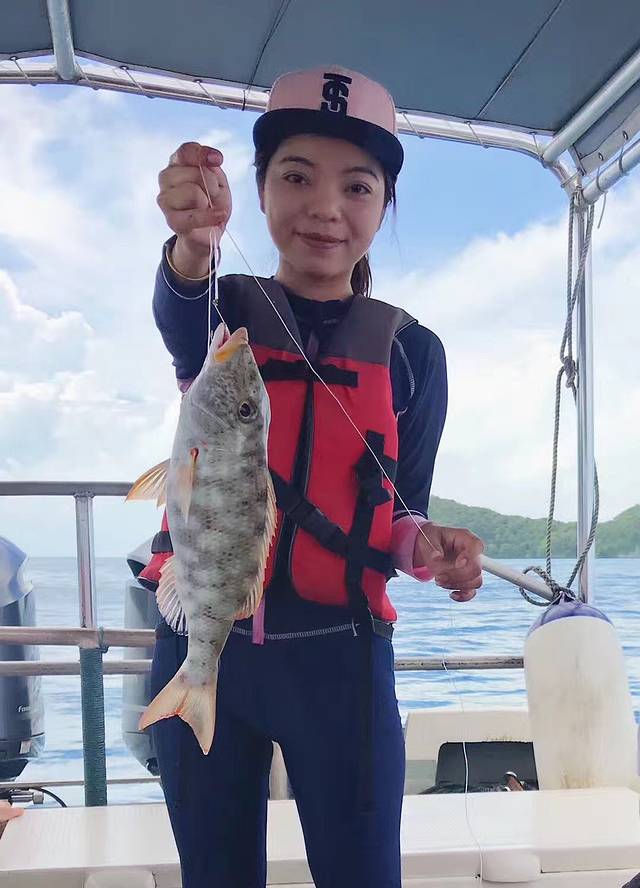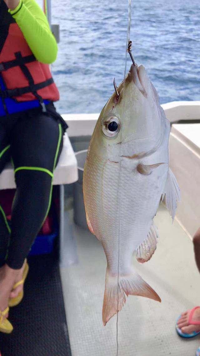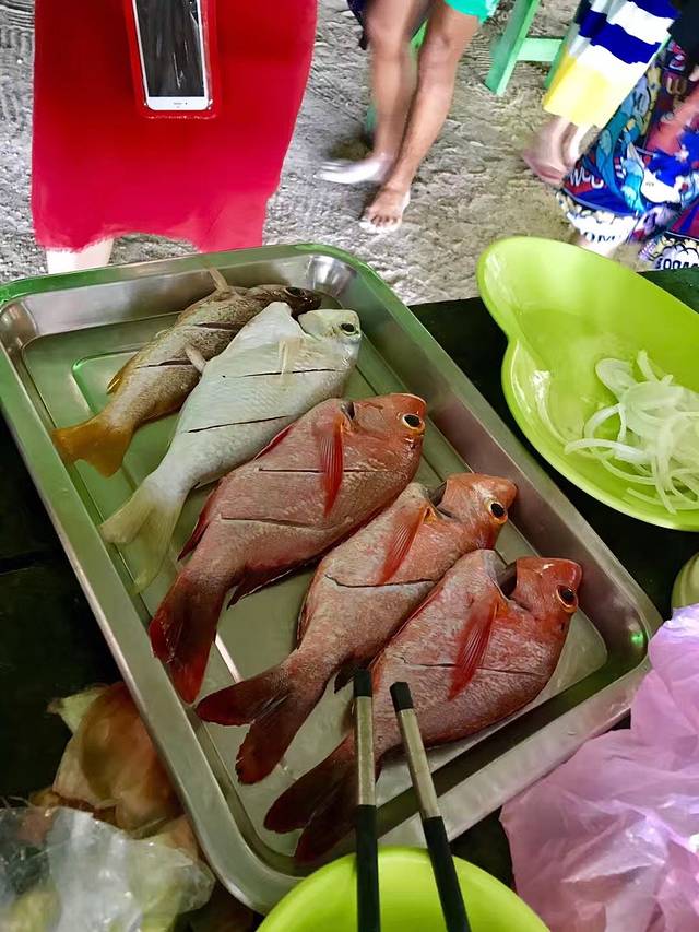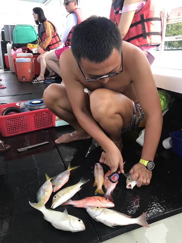 对于午餐来讲,我们有一天早上海钓,钓到的鱼我们导游就给我们蒸鱼吃啦。中午到沙滩休息应该难得吃一顿美味, 中午导游们娴熟的忙了起来,把海钓的鱼们做成了美食,现钓的是很鲜,还有网红秘制的秘制猪排烤肉,四小天鹅估计要是跟着导游在导游再呆一星期,都跳不起来了。
