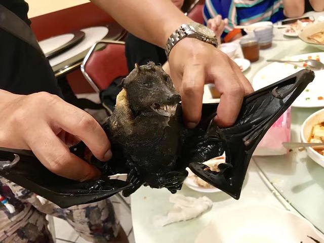 出海第一天的晚餐是漫漫浪请客,请我们吃海鲜大餐,竟然有龙虾、螃蟹,还有帕劳的特色蝙蝠汤,我们都不敢去碰他,船友大哥很自然的就拿了起来,我们拍了下来~别说味道其实很好吃,ps:只有帕劳的蝙蝠是可以吃的呦,他们是喝露水长大的小仙女,哈哈,其实吃花的汁液,吃水果长大的。