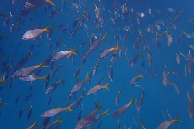 这一朵朵玫瑰在水下盛开的自如,其实却是一大片的玫瑰硬珊瑚。如果不是金色的颜色出卖了他们,还真的就以为是水下玫瑰呢。