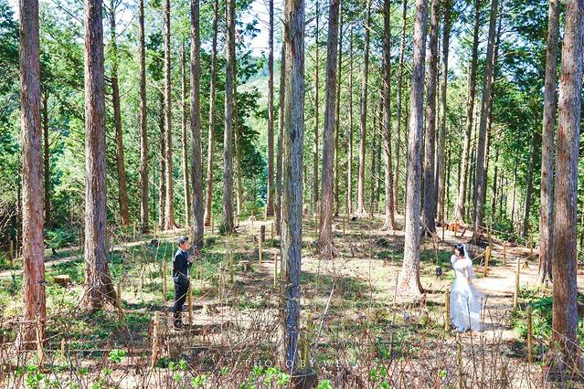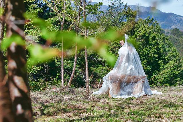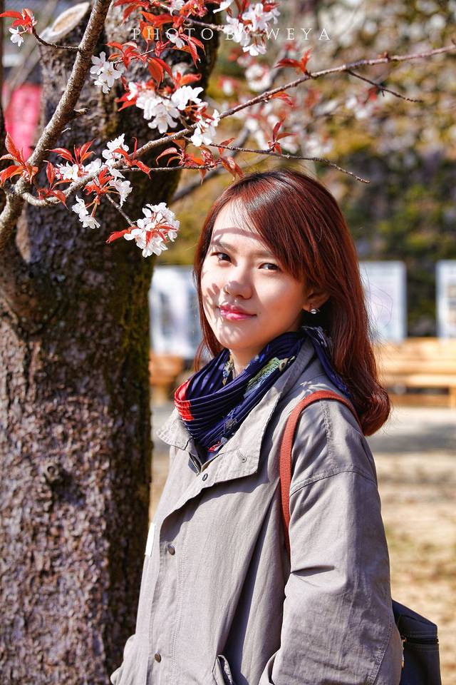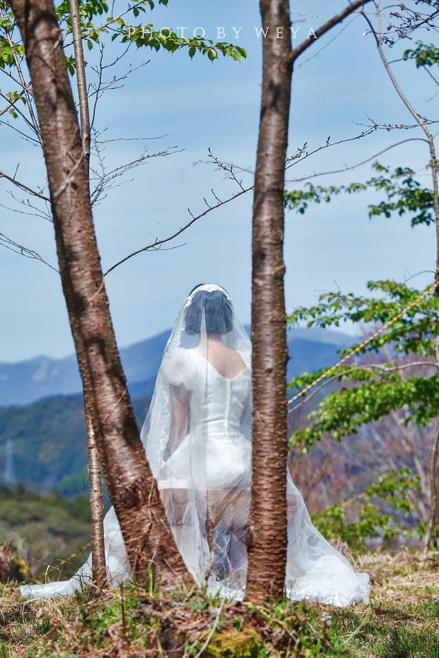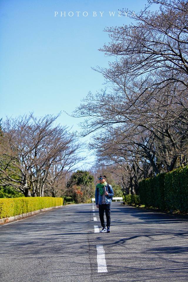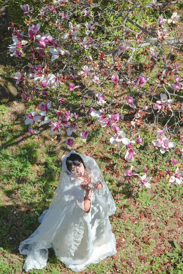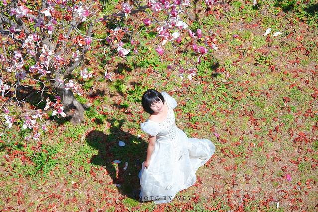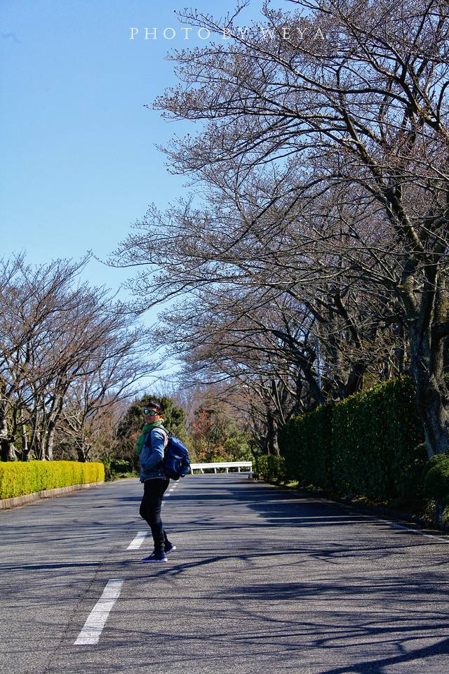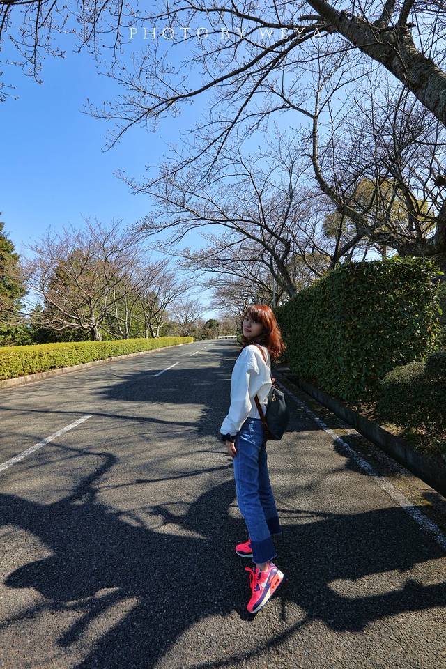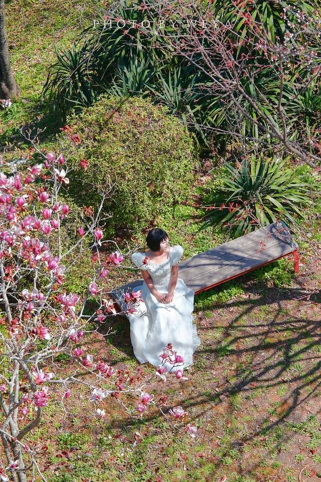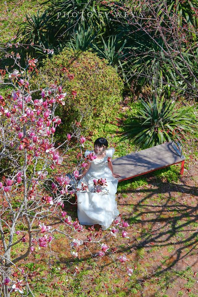 走进牧野公园,开花的樱花果然不多,看不到漫山遍野樱花的样子了,换了婚纱,竖起脚架,开照!
