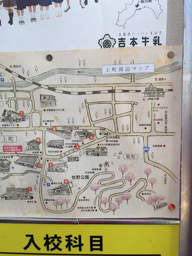 特急果然快,不一会儿就到了!!佐川站的墙上就有牧野公园的地图,对着照了一张,结果工作人员马上就过来给了我一张宣传册,里面有佐川附近的各种景点,当然也包括牧野公园的详细地图!