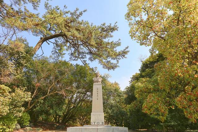 栗林公园位于四国的香川县,高松市南郊紫云山东麓,分为南、北两个庭园,总面积约75公顷,大约刚好是中正纪念堂的3倍大。栗林公园以6个水池和13处假山丘布局而成,景致多样,四时风貌不同;在三百多年前的江户时代初期到中期,曾是全日本最著名的『回游式大名庭』。
