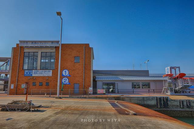 小豆岛有三个港口,我们是去土庄港,班次最多,但是再多也差不多一个小时一班,我们到的时候正好错过了上一班,只能等一个小时后的下一班,在休息的地方买了冰淇淋吃,出去照了下相,很快就等来下一班船售票时间(对,你没看错,等来的是售票的时间,这里卖票是三个窗口,对应小豆岛三个港口,每个窗口要等到去这个港口的下一班次前20分钟才开始售票,而且只售这班次的票,卖完就关窗口扎帐,等下一次班次时又打开窗口,如此轮回)