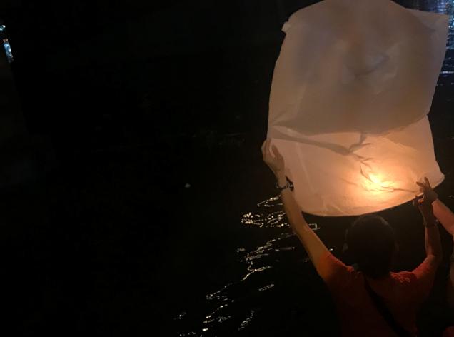 周围放灯的人肤色不同,国籍不同,甚至连故事也不同,可这一刻每一盏天灯之下的我们都有着相同的虔诚。