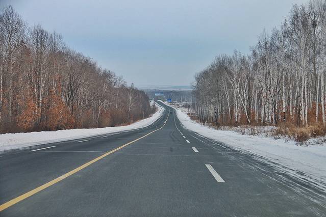 汽车行驶在去往东极广场的弯弯曲曲的公路上,两旁都是白桦林,车里响起莫斯科郊外的路上,恍惚间以为自己身处这一江之隔的俄罗斯,车开的飞快,透过车窗外的白桦林,将这隐约可见的落日抛在车身后。