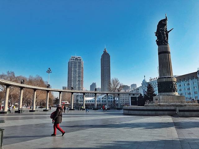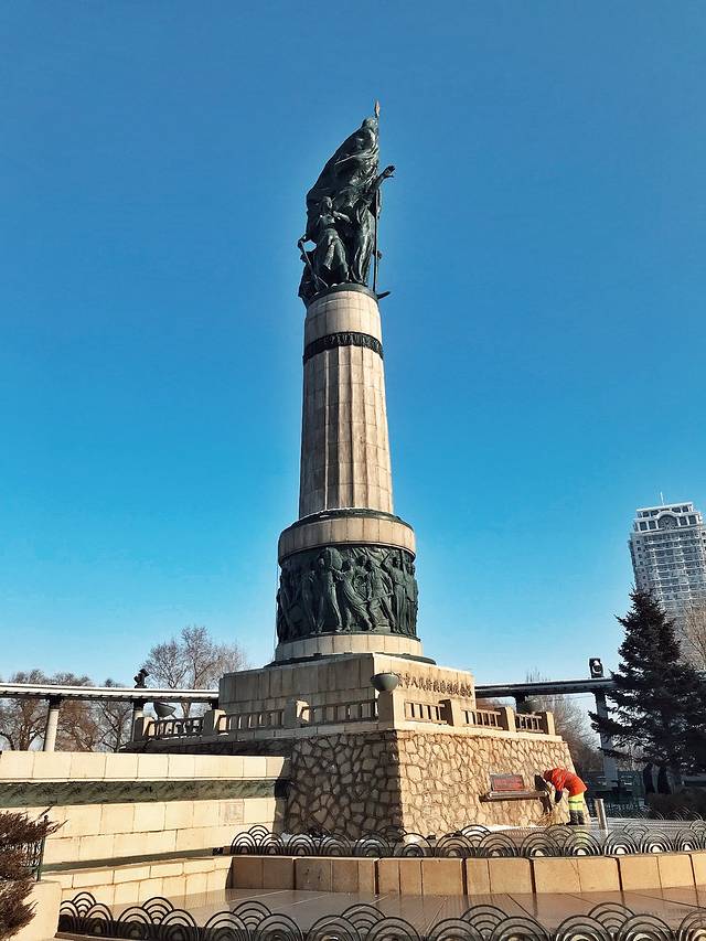 从中央大街走到终点的就是一个广场,防洪纪念塔就坐落在松花江畔,纪念塔与回廊已经成为英雄城市哈尔滨精神的象征。