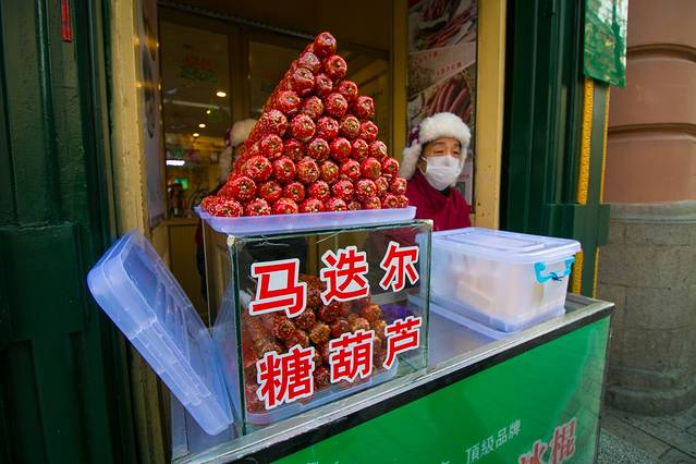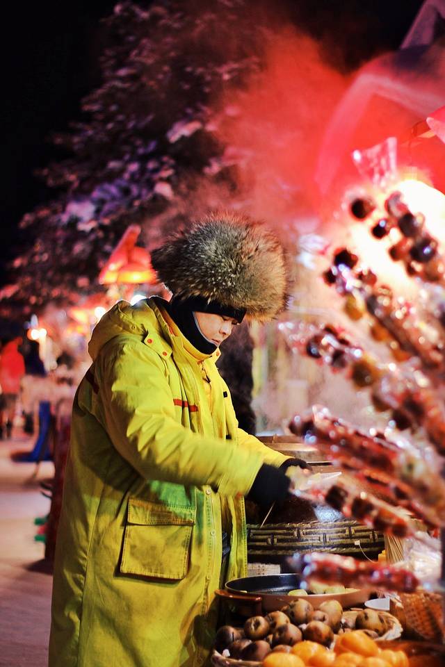 季的雪乡就像天然的大冰箱,当地人都将冰糖葫芦、柿子、梨子、饺子等可以冻得食物都搁置在室外,这么冷的天气,能咬一口冻柿子也是需要极大的勇气的,倒是手捧一个热气腾腾的烤地瓜在此时最能让人身子骨暖起来。