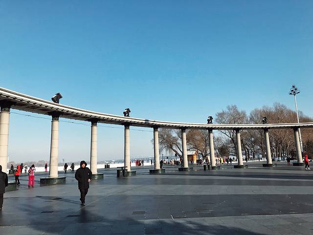 -东极广场位于中俄边境,冬季江面冻起来了,中俄边境线以江面的中心位置为界限,所以请勿踩到江面上,以防触碰边境线。