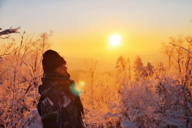 就像那首歌里唱的:“你看过了许多美景,你看过了许多美女,你迷失在地图上,每一道短暂的光阴。” 是的,总觉得行走于26个国家的自己已经阅景无数,但当我来到大秃顶山,看到那轮红日在雾凇的前景下悄悄探出了脑袋的那刻起,还是被迷失在这幅画中久久没缓过神来。