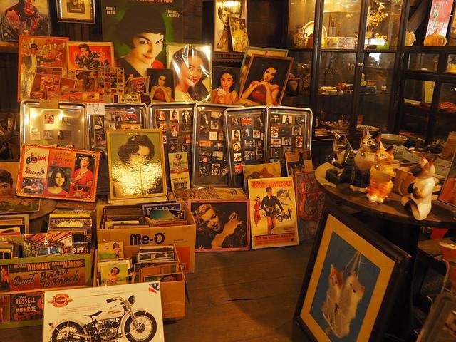 这是一家萍河旁边的博物馆餐厅、咖啡店、客栈、书店,里面有店主的几十年珍藏,比如大大小小的电影明星海报,时代传奇