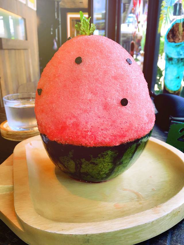 最先吸引我的还是它们家门口的猫,也是think park的标志性建筑了。点了他们家的招牌西瓜冰沙,找了一个落地窗的位置,一个人足足吃了一个小时才吃完