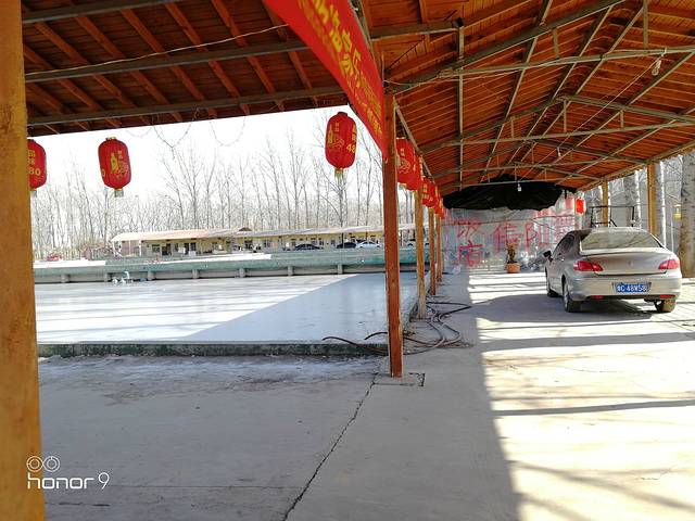 上了公路向左走不远就能看到这个大门,滑雪场是在绿园山水里面的,所以必须要从这里走过去,进大门之后左拐这一直走(导航在这个地方还是对的,不过是穿过人家的提子园,因为不是提子的季节显得比较荒凉,另一条路就是进了大门一直往里走过了一座桥之后向右一直走,沿着柏油路边上的土路走,走到一座小木桥之后右拐,过了桥左拐好了沿着路一直走就对了,就能走到他们破烂的停车场了。(此处无图)